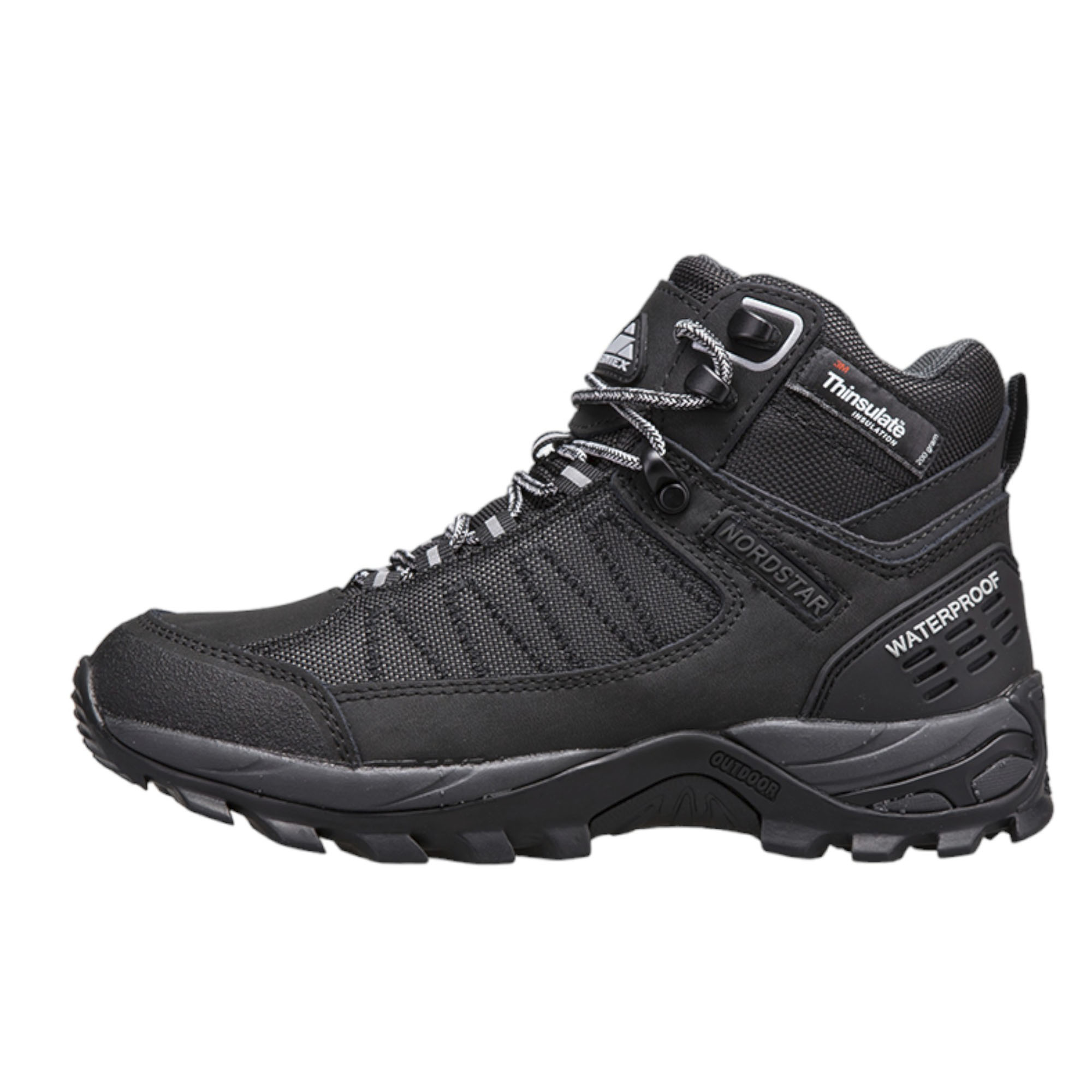 Современные ботинки для активного отдыха Editex Nordstar удачно комбинируют в себе многослойную защиту от внешних погодных условий и технологичные материалы для создания комфортного микроклимата внутри, что делает данные ботинки отличным выбором для пересечённой местности. Внешний слой выполнен на основе износостойкого нубука и текстиля, позволяя ботинкам выдерживать суровые условия, а водоотталкивающая обработка не позволит попасть влаге внутрь. Выполненная по технологии Waterproof Windproof Breathable (WWB) мембрана позволяет создать комфортный микроклимат внутри за счёт микропор, не давая холодному воздуху и влаге попасть внутрь, препятствуя образованию парникового эффекта. Утеплитель Thinsulate благодаря закрученным по спирали микроволокнам обладает высокими теплоизоляционными характеристиками, сохраняя тёплый воздух внутри. Противомикробная стелька Ortholite отлично фиксирует стопу и создаёт дополнительную амортизацию и вентиляцию, позволяя ощущать комфорт даже в самых суровых условиях. Подошва выполнена на основе высокоэластичного полимера и позволяет сохранять гибкость и прочность при сильных температурных перепадах, а специальные протекторы с развитой поверхность позволяет надёжно цеплять за поверхность. Благодаря крепким шнуркам на петельках ботинки крепко и плотно сидят на ноге, что позволяет не беспокоится о сползании во время прогулки. Износостойкие материалы обуви выдерживают не только суровые условия, но и частую стирку. Утилитарный дизайн чёрного цвета делают обувь универсальной вещью в гардеробе.Характеристики: