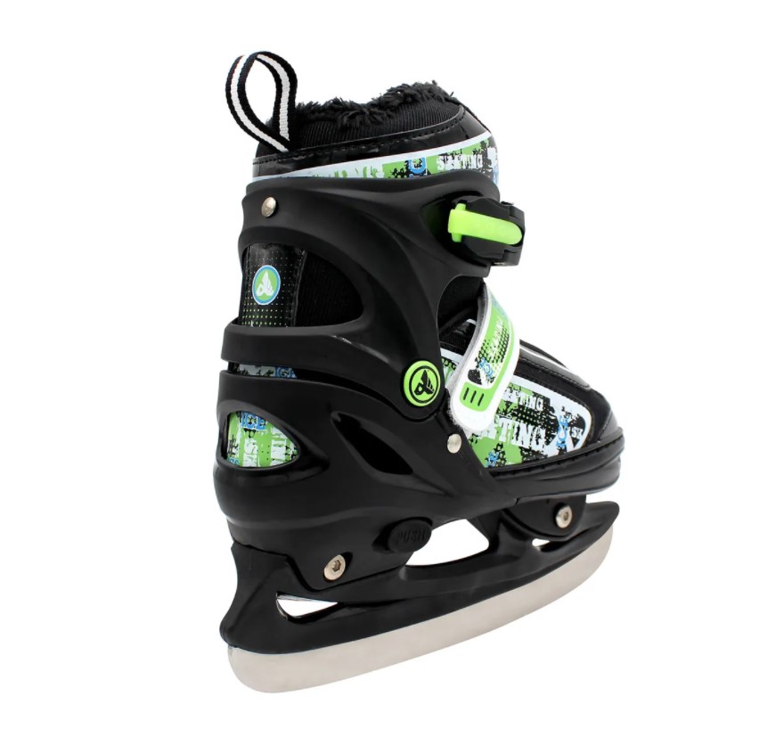 Современные раздвижные коньки сочетают в себе надежность и высокое качество, предназначены для любительского катания на открытом льду и крытых катках. Внешний жесткий ботинок из морозостойкого пластика надежно защищает от ударов, а также обеспечивает поддержку ноги во время катания. Внутренний ботинок с мягкой стелькой из пеноматериала обеспечивает комфорт и удобство пользователя. Наличие утепленной искусственным мехом подкладки гарантирует длительное сохранение тепла. Специализированная раздвижная конструкция коньков позволяет использовать их в течение многих сезонов даже с учетом изменения размера ноги пользователя. Раздвижной механизм позволяет менять размер коньков в пределах 4 размеров. Коньки оснащены удобной системой фиксации на ноге со шнуровкой, клипсой с фиксатором и застежкой на липучке. Надежное лезвие коньков выполнено из стального сплава, который не подвержен преждевременной коррозии. Стильный дизайн в черном цвете с яркими вставками подойдет как взрослым, так и детям.В комплекте с коньками идет удобная сумка для переноски и хранения.