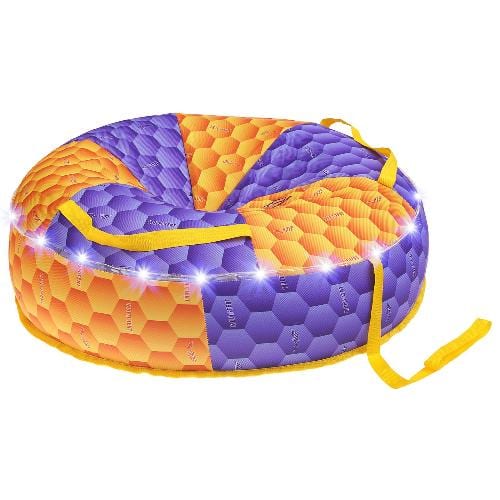 Особенностью этой модели является энергоэффективная LED подсветка. Источником энергии служит литий-ионный аккумулятор, позволяющий поддерживать высокую яркость свечения на протяжение нескольких часов. Аккумулятор легко заряжается через разъем USB. Данная модель тюбинга позволяет выбрать один из трех вариантов свечения, управление осуществляется при помощи специальной кнопки. Верхняя часть выполнена из инновационного антискользящего материала MULTI-TENT с оптимальным сидением, для комфортного спуска. Дно изготовлено из морозостойкого пластика, за счет которого и развивается высокая скорость. В качестве каркаса выступает автомобильная камера. Сноутьюб имеет усиленные объёмные, мягкие ручки и буксировочный трос для транспортировки.